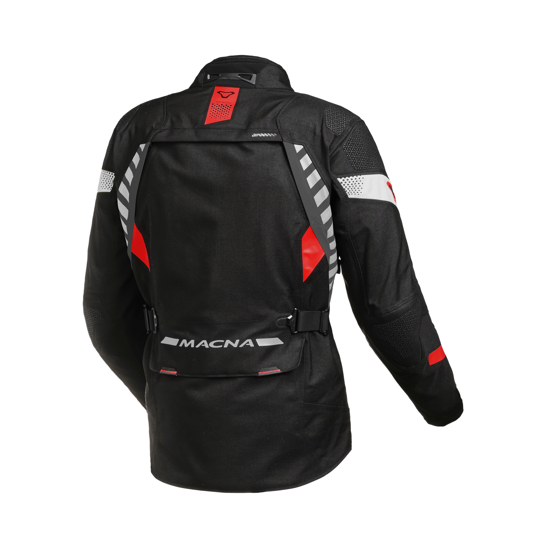 No hassle with buttons and loops in the sleeves thanks to our own Easy Cuff™ system. Also in-house developed are the Centrack™ buckle – which in this garment can be found at the waist and on the sleeve – and a Coat Hanger™ that’s developed to carry the weight of a motorcycle jacket.